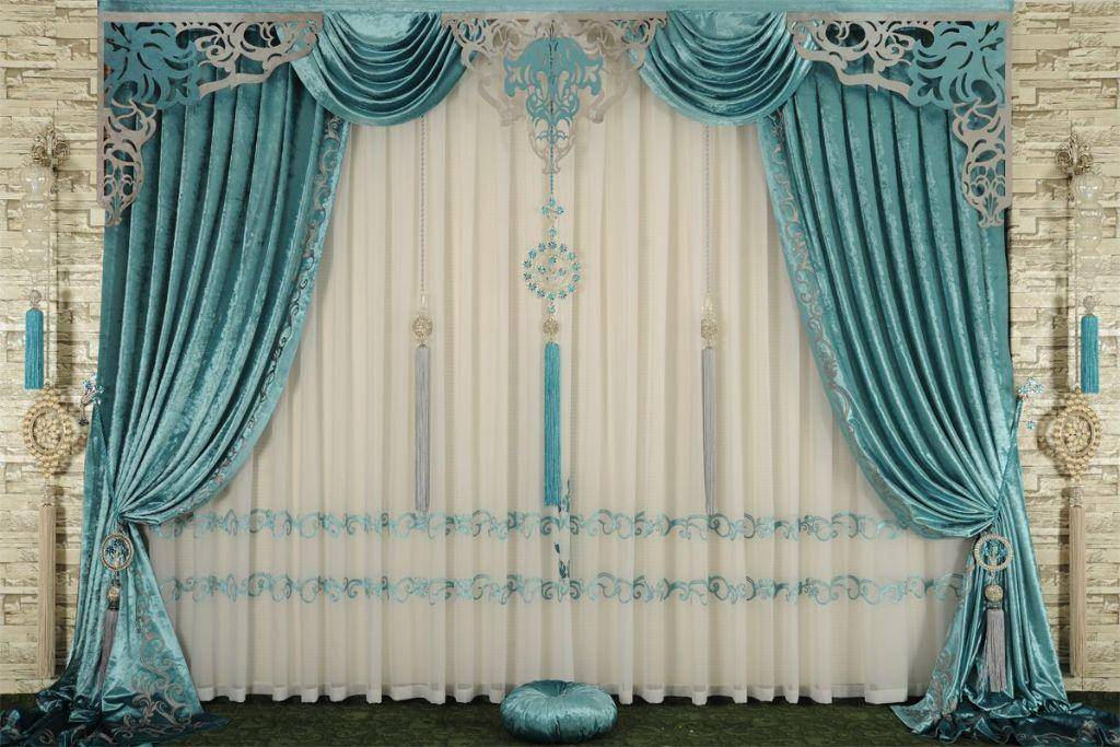 Дизайн бирюзовых штор во многом определяется используемой для их изготовления тканью. Здесь допустимы такие варианты: