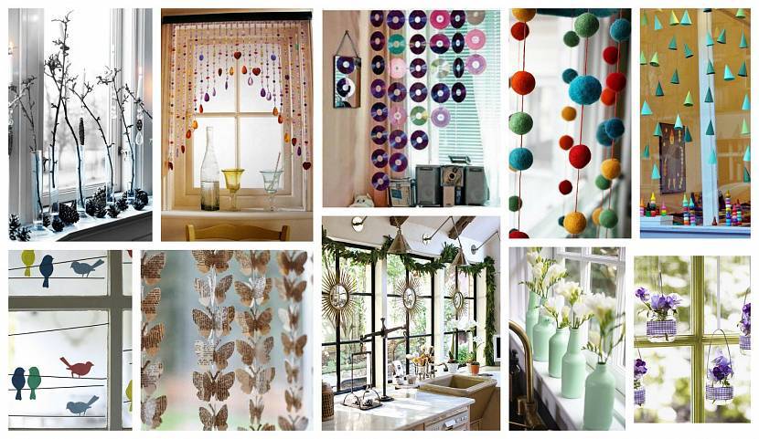Использование хендмейда стало популярным, потому что можно повесить на окно вместо штор любое украшение и проявить некую индивидуальность. Для создания собственного стиля используется все, что попадётся под руку. Нитки с цветочками в маленьких горшочках, гирлянды, маленькие фигурки, шишки или ёлочные игрушки помогут создать свой неповторимый стиль окна.