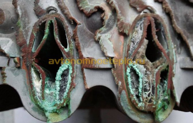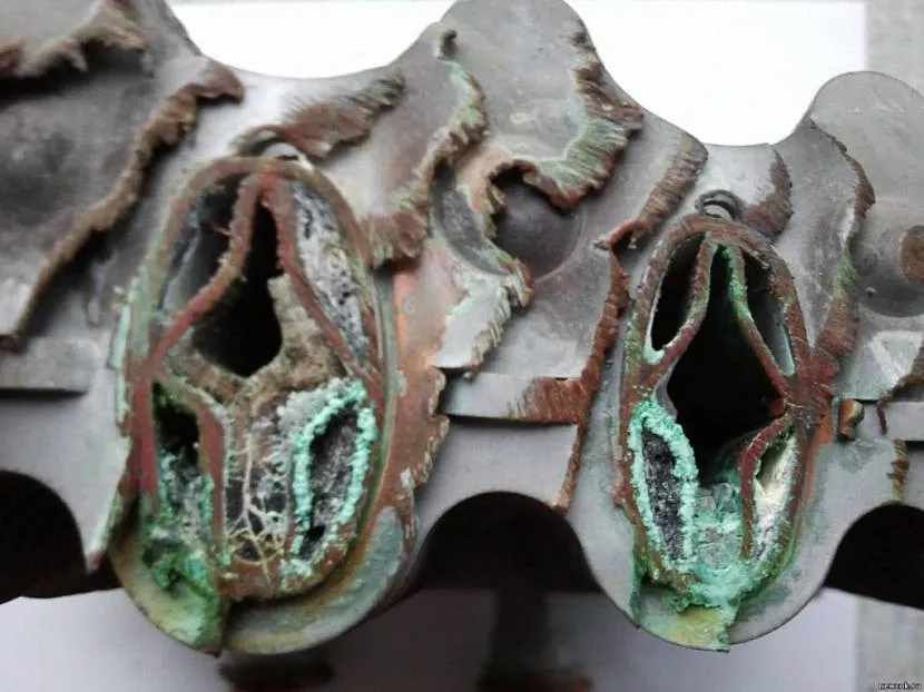 Засоренный битермический теплообменник газового котлаИсточник cosmo-frost.ru