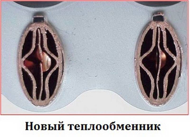 Медь – благородный металл, не подверженный никаким видам коррозии. Она химически инертна, отлично переносит давление. Медь лучше проводит тепло, поэтому для нагрева самого элемента и протекающей жидкости требуется меньше топлива. Вес медной модели невелик, размеры компактны при очень развитой рабочей поверхности.