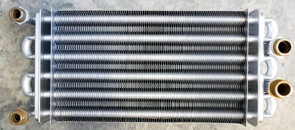 Теплообменник — это емкость, где тепловая энергия, выделяемая при сгорании газа в газовой горелке, передается тепловому носителю. Конфигурация теплового обменника может быть разной и зависит от того, как устроен газовый котел. По способу передачи тепловой энергии от источника тепла жидкому теплоносителю их делят на теплообменники первичного и вторичного (сдвоенного) типа, а также битермические.