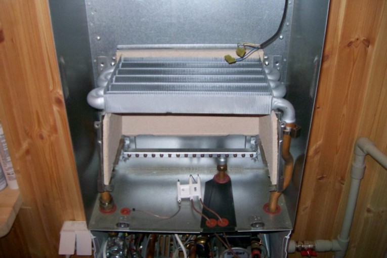 - Чистка производится по мере загрязнения теплообменника сажей и известковыми отложениями. При этом эффективность отопления и нагревания воды уменьшается. Можно вызвать мастера, но и вариант с самостоятельной очисткой тоже не исключен.