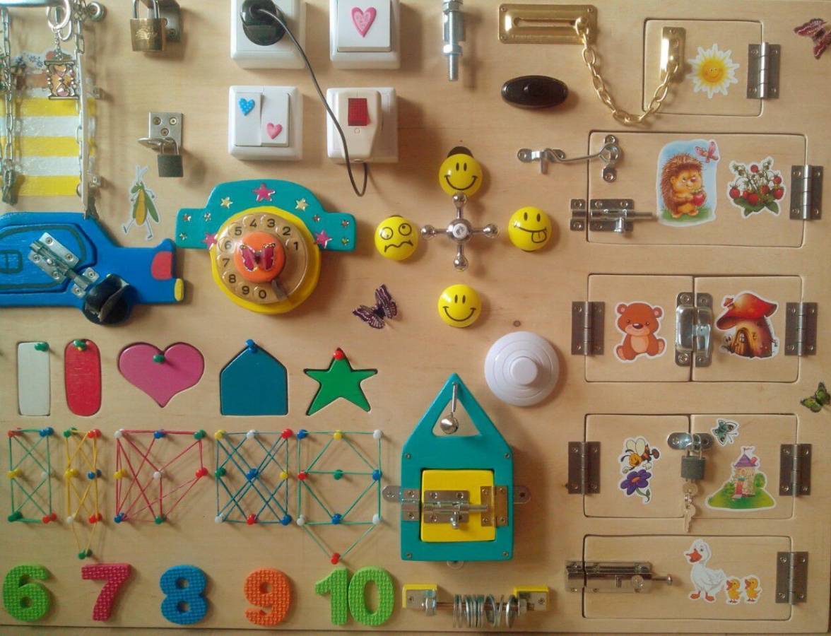 Бизиборд своими руками — занятие, которое всецело захватит родителей, бабушек, дедушек, а также старших детей. Наградой за труды может стать большое количество свободного времени и гениальный ребенок в перспективе.