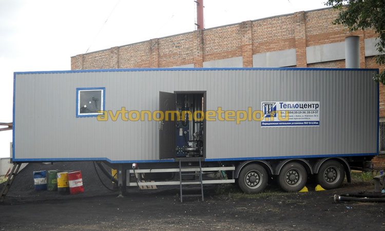 Современные передвижные модели представляют собой мобильные котельные для нагрева воды. Их используют в качестве временного теплоснабжения объектов или при возникновении аварийной ситуации. Всю конструкцию устанавливают на шасси для быстрого перемещения.