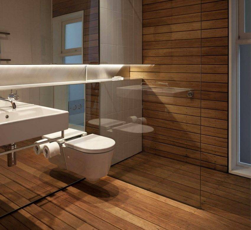 Такие варианты лучше всего смотрятся в совмещенном санузле или в ванных комнатах, в которых достаточно места для подобного оформления. Если же ванная и туалет имеют стандартные, типовые размеры, то целесообразнее при их отделке воздержаться от цветовых экспериментов, оформив помещения от пола до потолка в одном светлом нейтральном оттенке – сером, молочном, кофе с молоком, кремовом. Допустимо использование пастельных оттенков – сиреневого, пудрового, голубого, желтого.