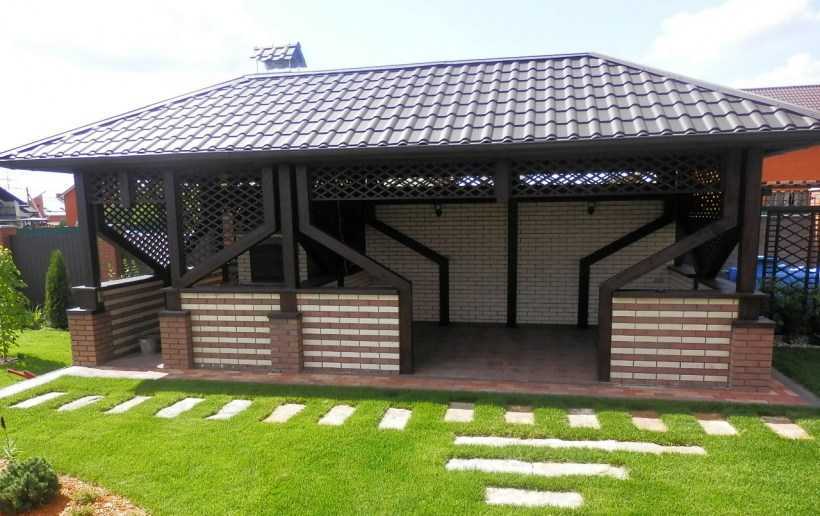 Форма, размер и дизайн выбирают с учетом целей использования беседки: просто для отдыха, для сбора большими компаниями, для приготовления блюд на гриле или мангале, для использования в качестве полноценной летней кухни (тогда понадобится хозблок), чтобы загорать и так далее.