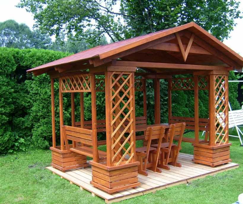 Сделать какую-либо вещь самостоятельно, значит — не только сэкономить средства на покупке готового изделия, но также получить удовольствие от результата. Кроме того, такой подход даст возможность спроектировать мебель согласно площади строения, тем самым решить вопрос по обустройству беседки с максимальной эффективностью.
