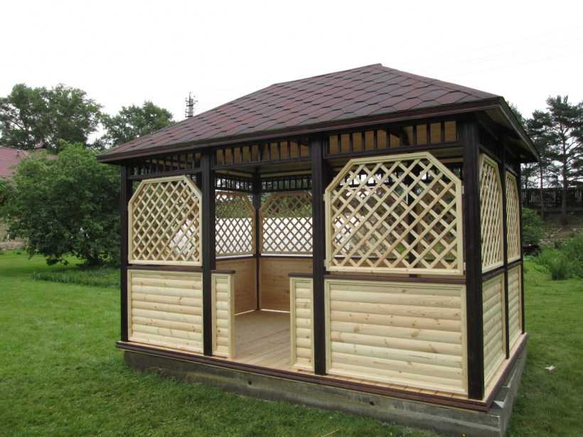 - разнообразие материала по цвету и форме, возможность возводить из него беседки любых размеров и любого уровня сложности;