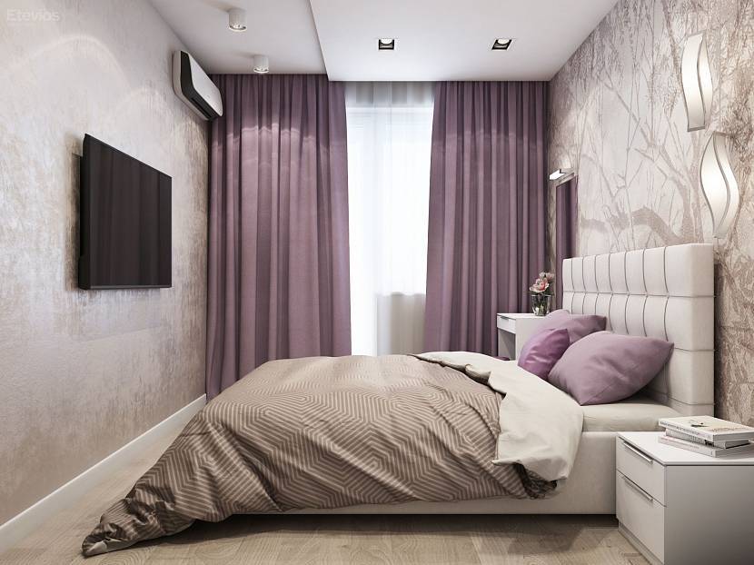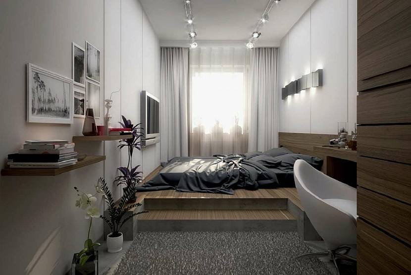 Красивая отделка узкой спальни в современном интерьереИсточник Etevois.ru