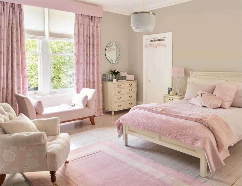 Современный дизайн спальни девушки в настоящее время включает в себя такой элемент декора, как шторы. Здесь многое зависит от увлечений и предпочтений девушки. Если ей нравятся нейтральные, не вызывающие цвета, имеет смысл приобрести персиковые, бежевые, светло-голубые шторы.