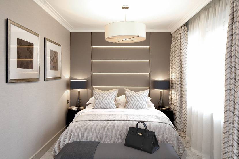 Малогабаритная спальня в современной классике с красивым декорированиемИсточник behance.net