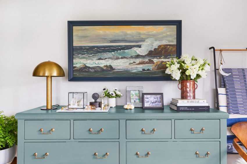 - Комод можно поставить под телевизор, чтобы сэкономить пространство.