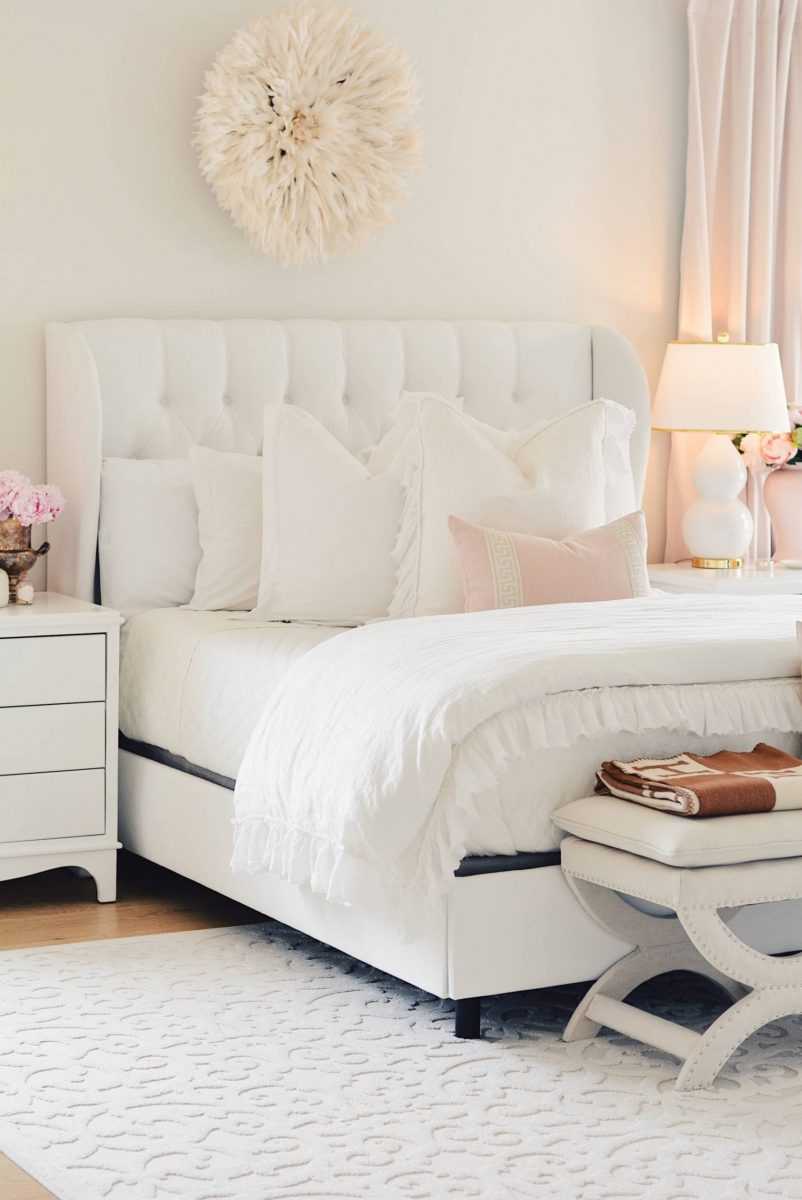 Небольшой пуфик или скамеечка также необходимы в комнате для сна. Существует мнение, что нельзя сидеть на том, где спишь. Многие стараются этой позиции придерживаться.