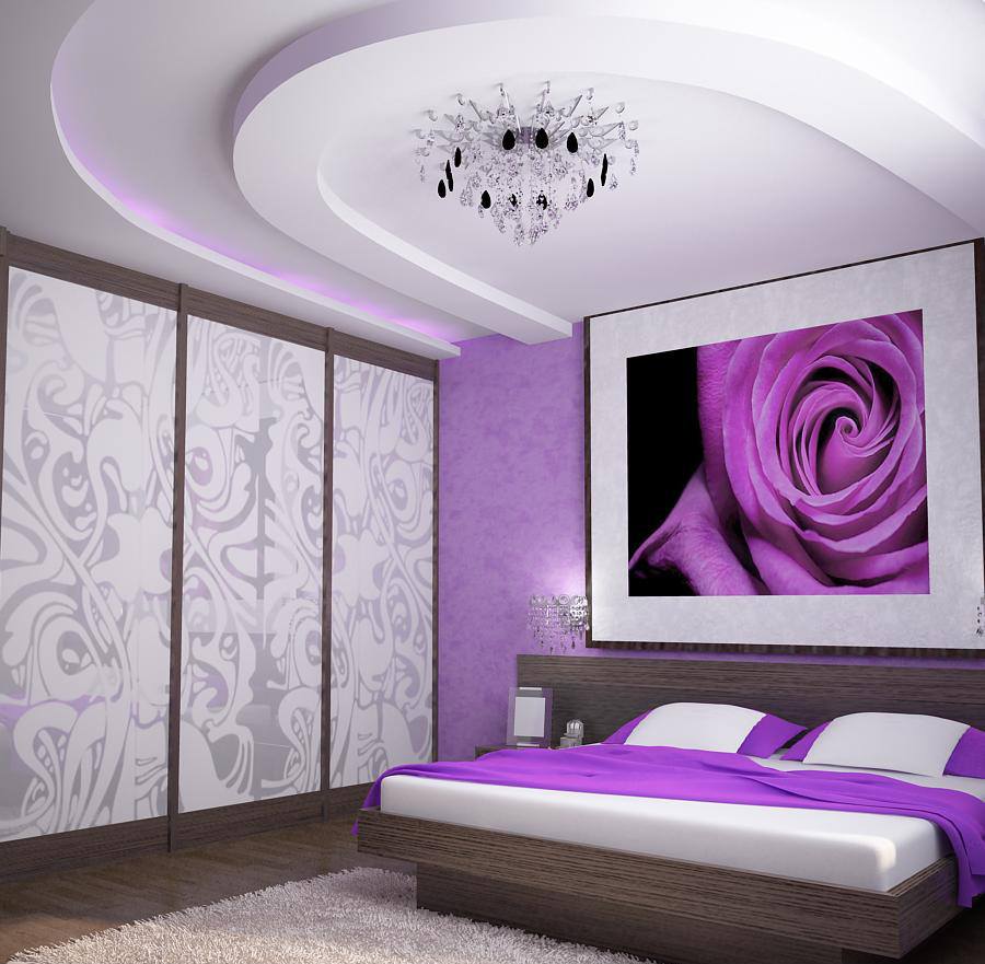 Сиреневые обои в спальне