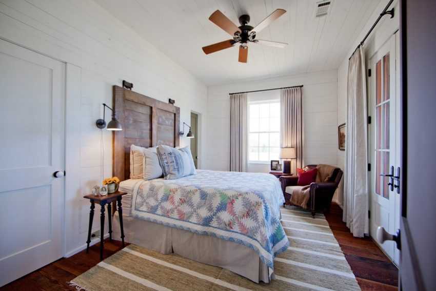 Спальня в стиле кантри – мечта тех, кто много работает и устает от шума, постоянного общения с людьми и быстрого темпа. В такой спальне все может быть в разных оттенках коричневого: деревянная мебель, меховые ковры и шкуры, кожаное кресло, плетеные льняные покрывала и шерстяной плед. Это невероятно уютно, тепло и стильно.