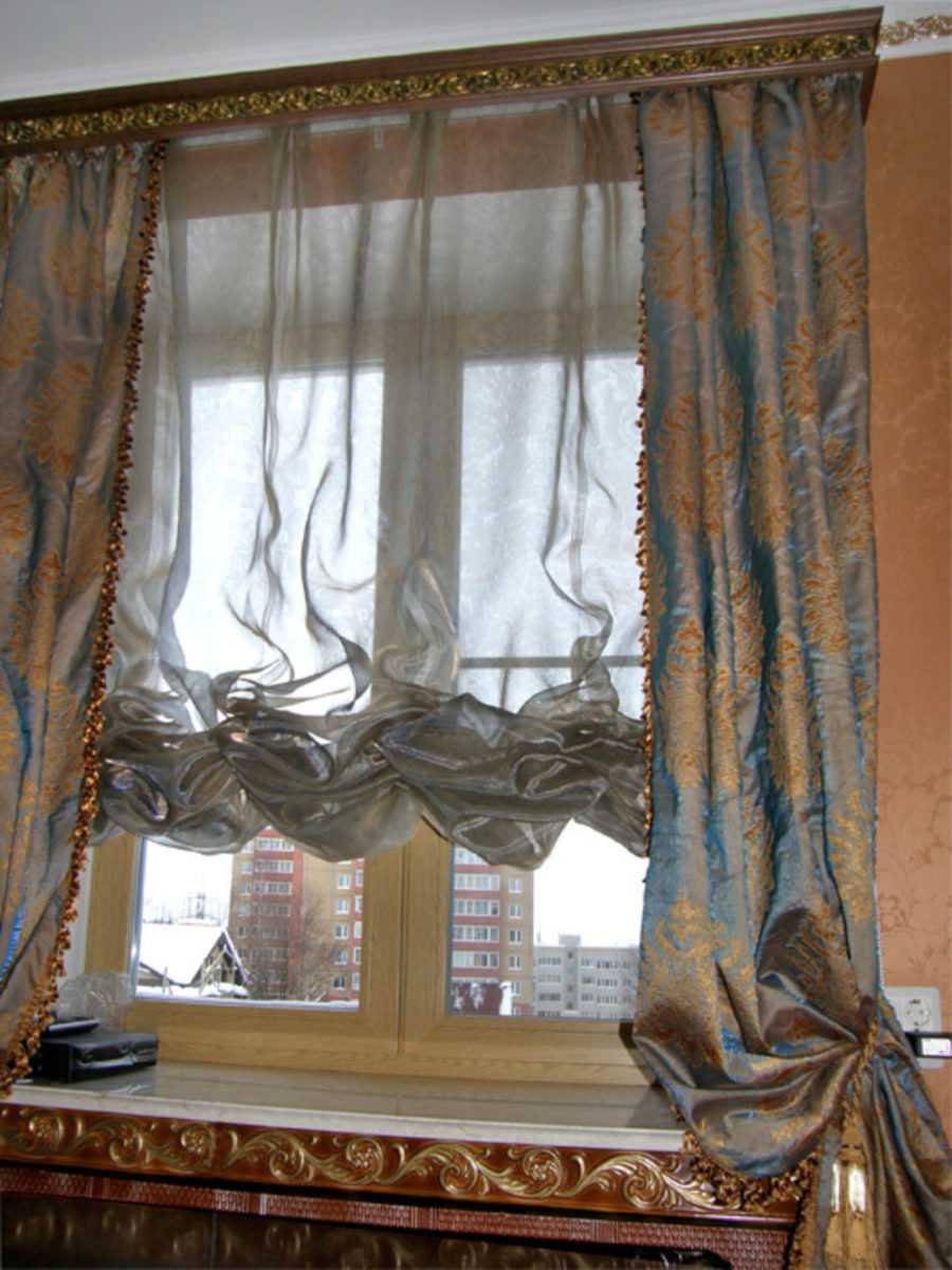 2). Отталкиваясь от мебели | Тяжелые классические предметы быта стоит визуально облегчить за счет штор, от которых в помещении становится светло. |