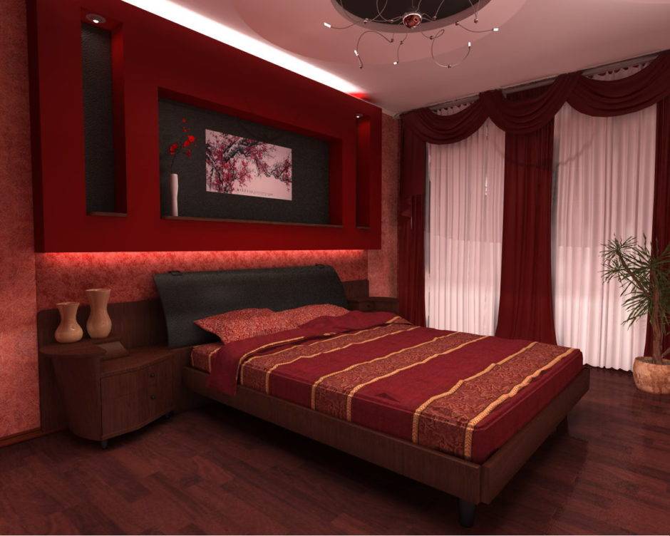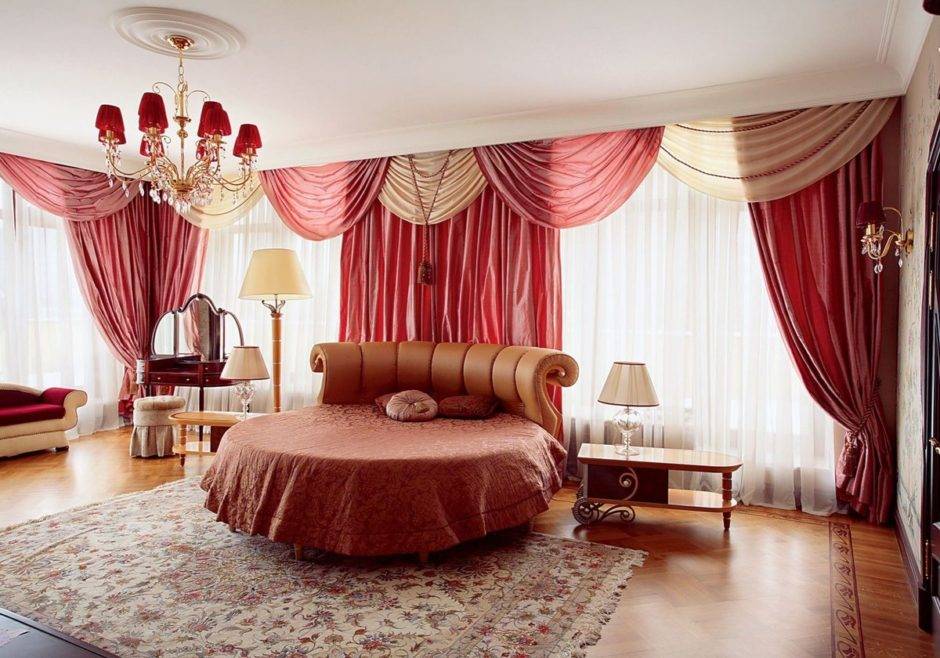 Обратите внимание, бордовые шторы в спальню можно подобрать без труда.