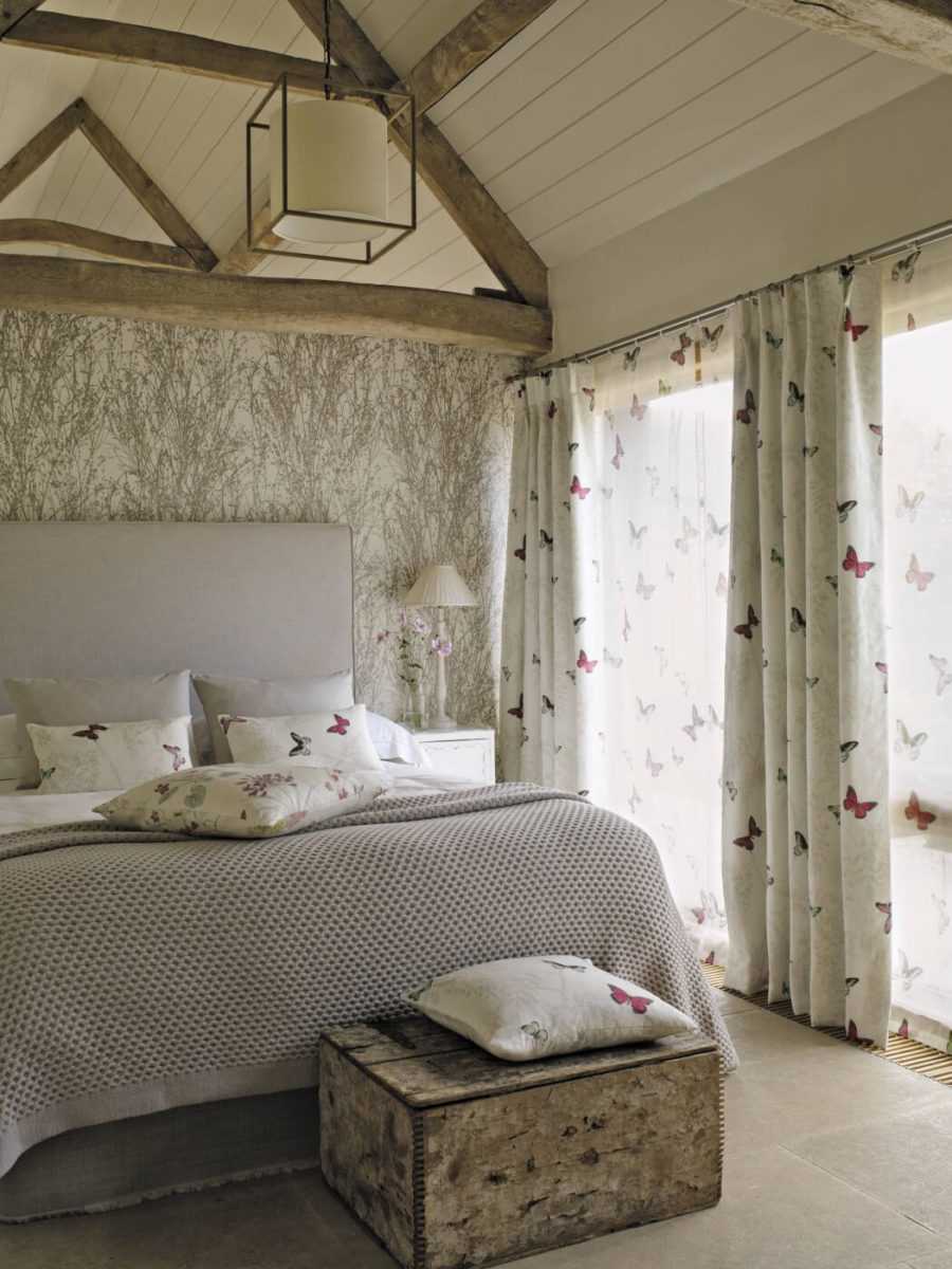 3). Выделить обои и оставить шторы нейтральными | Выступающий рисунок на покрытии будет смотреться более ярко в сочетании с нежными бежевыми шторами. |