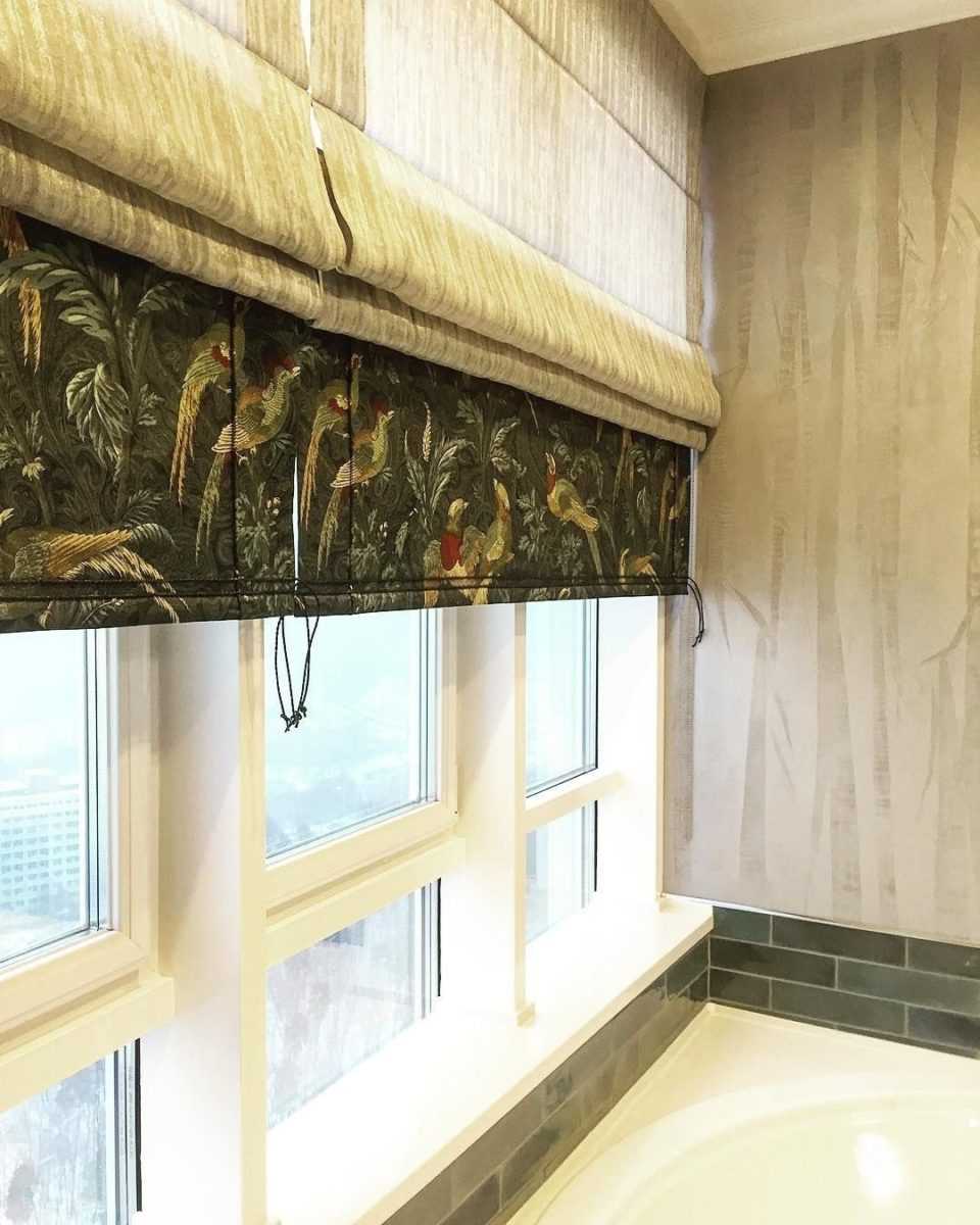 При выборе штор для ванной комнаты стоит отдать предпочтение вариантам из влагоустойчивого полотна. Очень удобны в данном случае рулонные шторы.