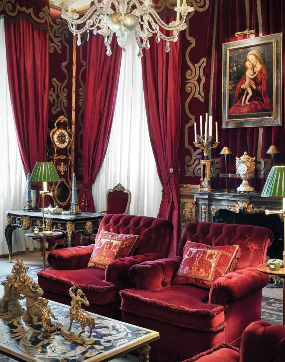 Говоря о стилистических направленностях интерьера, располагающих к использованию винного цвета, в первую очередь нужно выделить классические течения, такие как барокко, нео-классика и модерн. Данные стили предусматривают роскошное оформление помещения, содержащее множество аксессуаров и мебели из натуральных материалов, декоративного текстиля, фигурную отделку стен и потолков. Выразительные бордовые занавесы в такой обстановке будут смотреться более чем уместно.