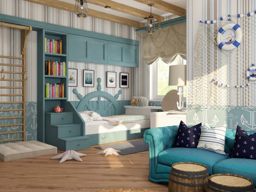 Дизайн детской комнаты с морской тематикой Источник decorationinfo.ru