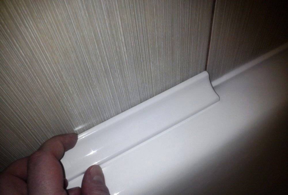 Пластиковый бордюр для ванны может быть, как обычным, так и самоклеящимся. Чаще всего их применяют в случаях облицовки стен санузла ПВХ панелями. Они могут быть в виде уголка или ленты шириной 3-6см и длиной 1,8-3м.