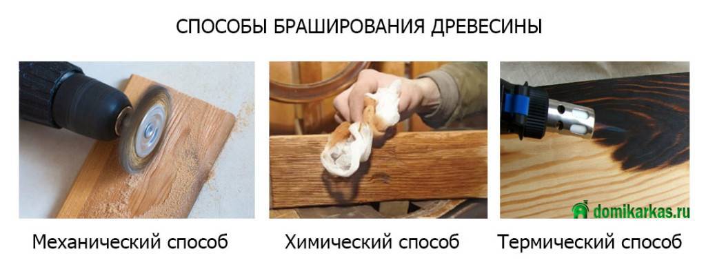 Некоторые мастера применяют комбинированный метод браширования. Сначала химическим способом производят черновую обработку древесины, убирая значительную часть мягких волокон. Потом выполняют финишную отделку механическим путем, завершая процесс браширования.