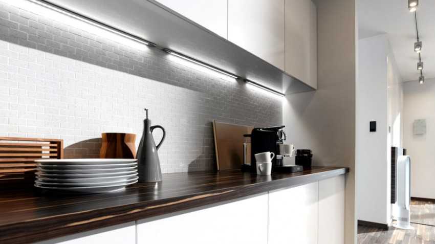 В таком случае отличным решением становится установка светильников на нижней части навесных шкафов, такие можно изготовить самостоятельно. Либо приобрести на фабрике икеа, шкафы для кухни в данном случае можно подобрать на любой вкус.