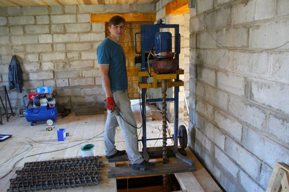 По этой технологии работают довольно мощные установки, но есть даже ручные шнековые буры. Ими работать очень тяжело, но возможно. Есть простое устройство, которое делает шнековое бурение скважин на воду своими руками проще — это тренога с воротом и укрепленным вверху блоком. При помощи троса, лебедки и блока проще доставать буровой снаряд, а делать это надо часто.