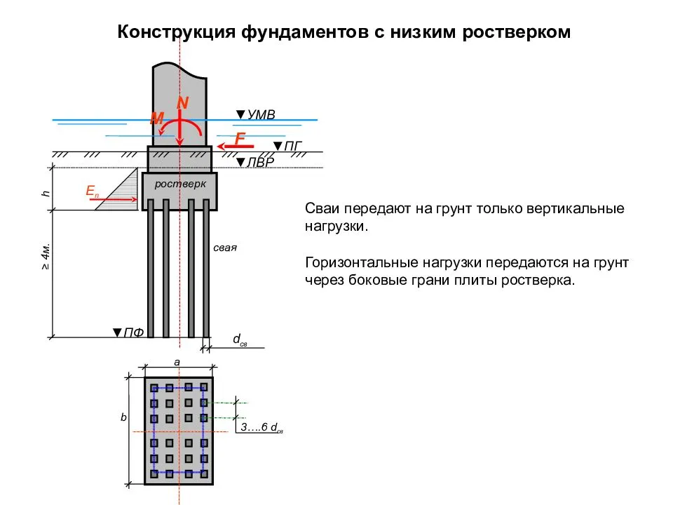 Формулу используют и для мелкозаглубленного основания, и для ростверка нулевой высоты. Висячий ростверк считают по другой технологии, достаточно сложной – в таком случае расчеты лучше предоставить выполнить профессионалам.
