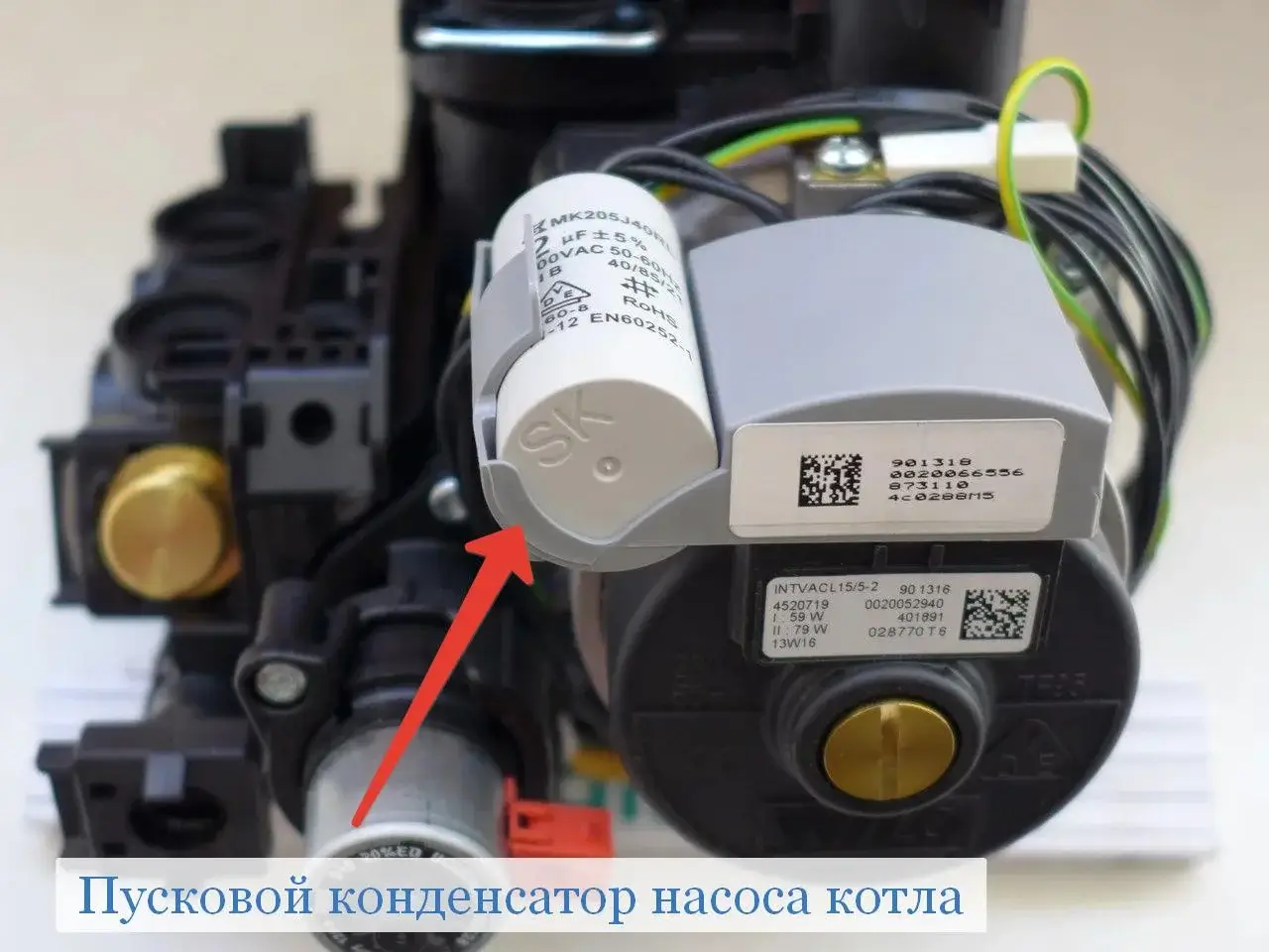 Пусковой конденсатор проверяется элементарно – замером его емкости с помощью прибора. Номинальная емкость конденсатора на нем указано (обычно это 2-2.5 наноФарад). Замеряем, сравниваем. Если емкость существенно ниже номинальной, например меньше единицы – то конденсатор необходимо заменить. Потеря емкости конденсатора насоса приводит к его сильному нагреву, снижению производительности и уменьшению срока службы насоса. В некоторых моделях котлов для замера параметров конденсатора понадобится снимать полностью насос.