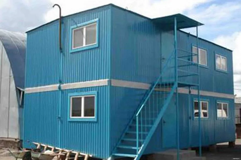 - Отсутствие сложностей с установкой. Можно смонтировать бытовку на простом свайном фундаменте или установить ее на сварное металлическое основание, бетонную плиту.