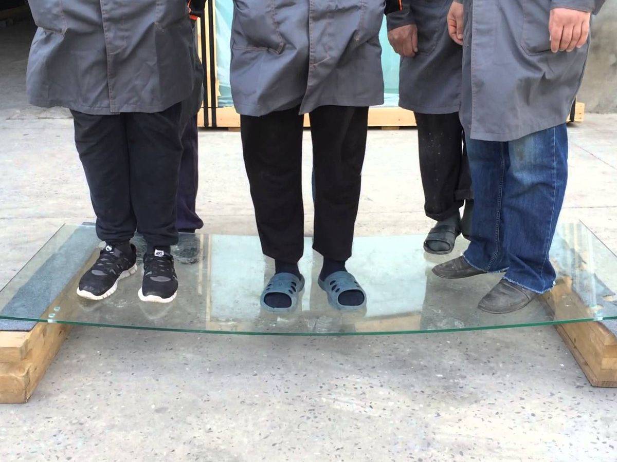 Закаленное стекло имеет явное преимущество в том, что при механическом повреждении распадается на мелкие гранулы, которые не опасны для здоровья человека.