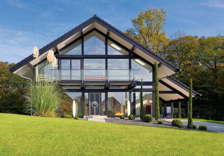 В основе строительства стеклянного дома лежит каркасная технология, которая применяется в немецком фахверке. Фахверк в переводе с немецкого языка – ячейка, жесткий деревянный каркас, включающий в себя раскосы и балки, образующие большие секторы. Фахверковая конструкция имеет не только привлекательный внешний вид, но и повышает надежность и устойчивость постройки.