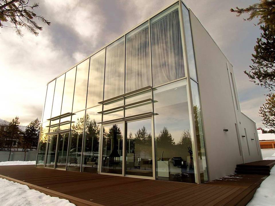 В качестве стен дома использованы тройные стеклопакеты высокого качества. Приватность проявляется только в двух туалетах и душе, которые закрыты алюминиевыми каркасами.