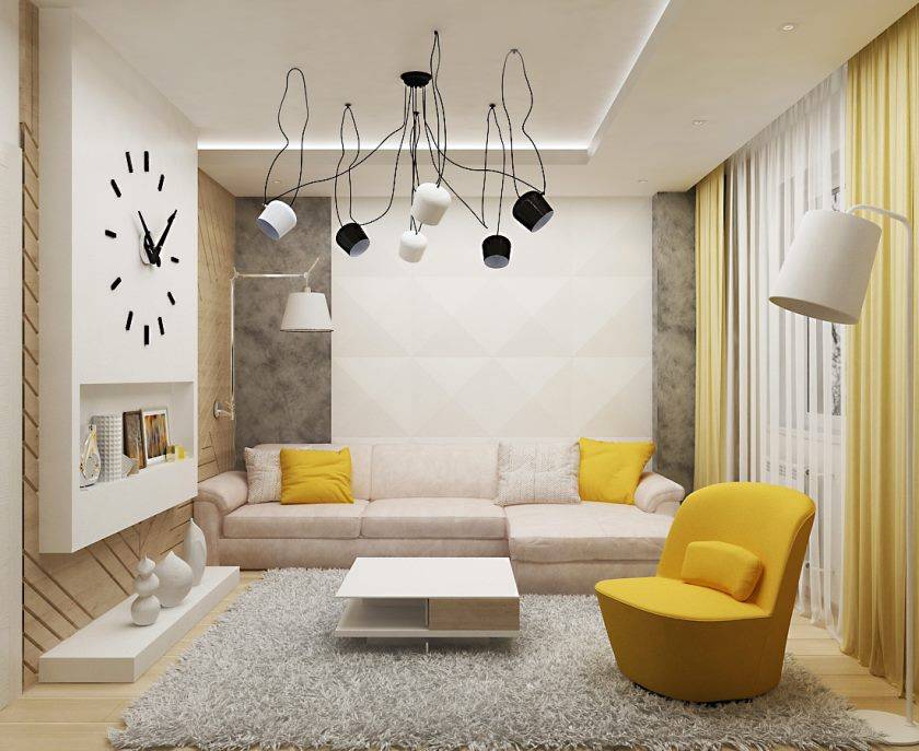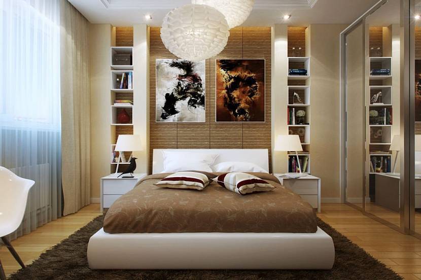 Для маленькой комнаты подойдет интерьер в бежевом, молочном или светло-сером. Эти тона разбавляют несколькими яркими акцентами. Желательно разместить в комнате предметы с блестящей поверхностью. Это могут быть зеркала, мебель, аксессуары. Свет, отраженный от таких поверхностей, дает иллюзию продолжения помещения вглубь.