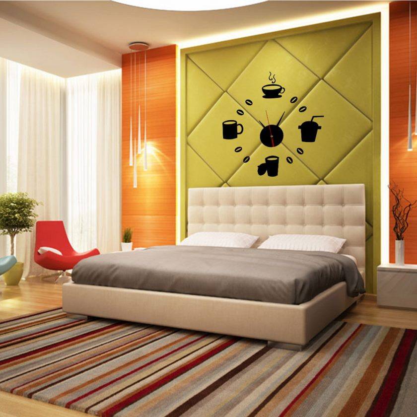 Используя аксессуары, нельзя нарушать интимную атмосферу спальни. Они не должны отвлекать или раздражать. В то же время, а эту комнату гости не попадают и можно сделать оригинальный, необычной выбор часов. Главное — это не навредить остальному интерьеру.