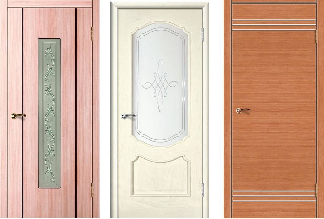 Помимо ПВХ, в качестве покрытия может выступать шпон либо накладка мелкой древесной стружки. Такие полотна на конечном этапе производства покрываются тонирующей жидкостью либо краской.
