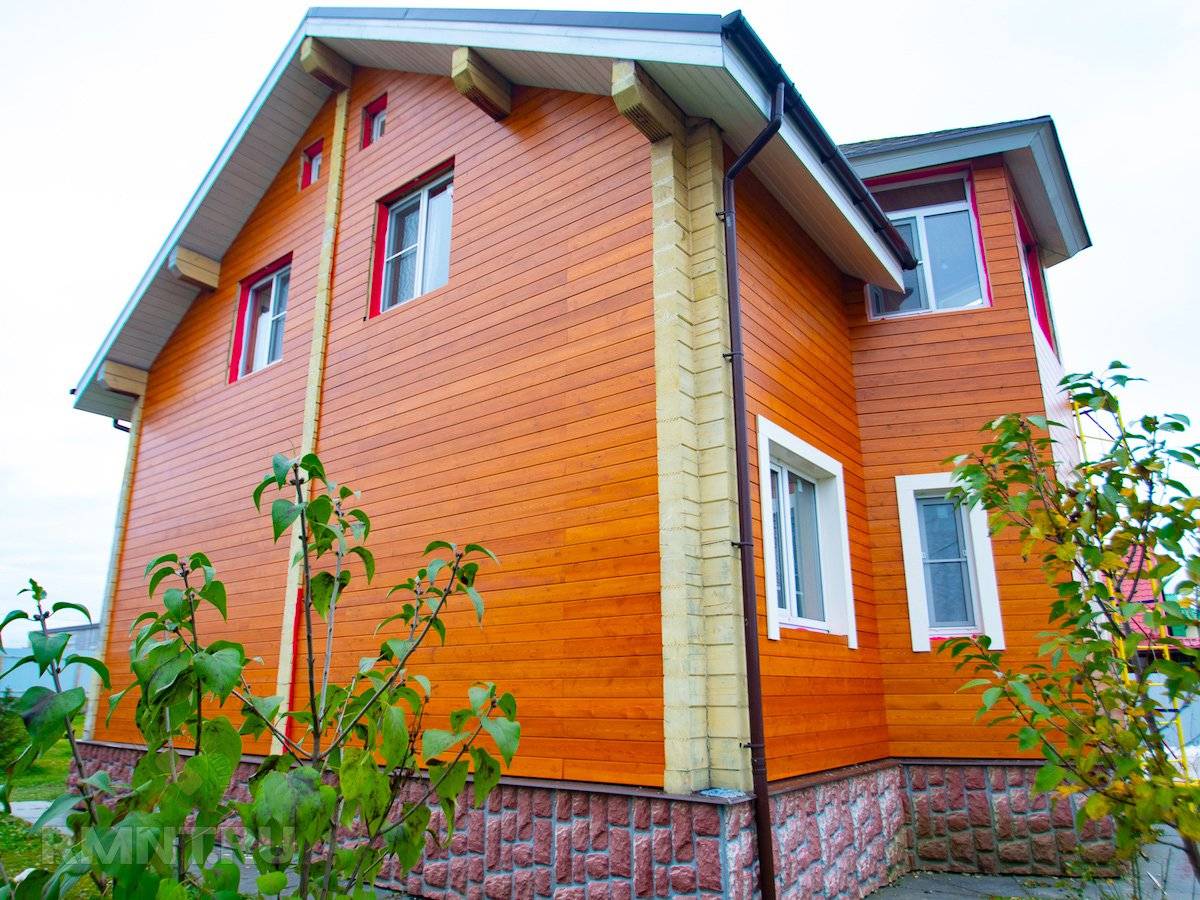 Наиболее популярные материалы для обшивки стен — блок-хаус и имитация бруса. Есть еще вагонка для наружной отделки — она имеет большую толщину, по сравнению с той, что предназначена для внутренней отделки дома в остальном же ничем не отличается .