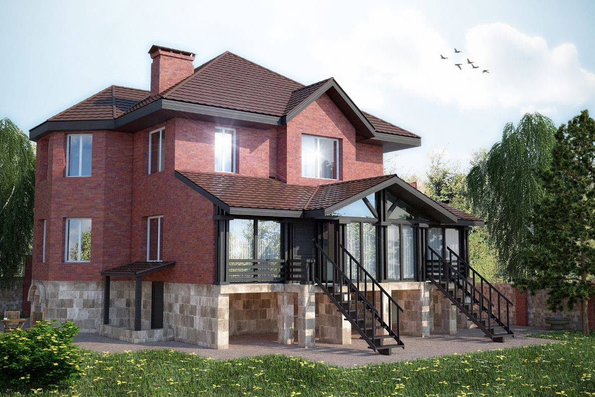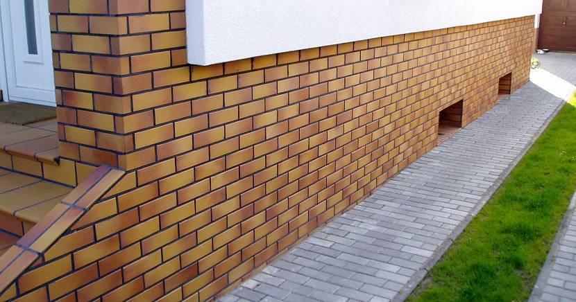 Отделка цоколя кирпичом