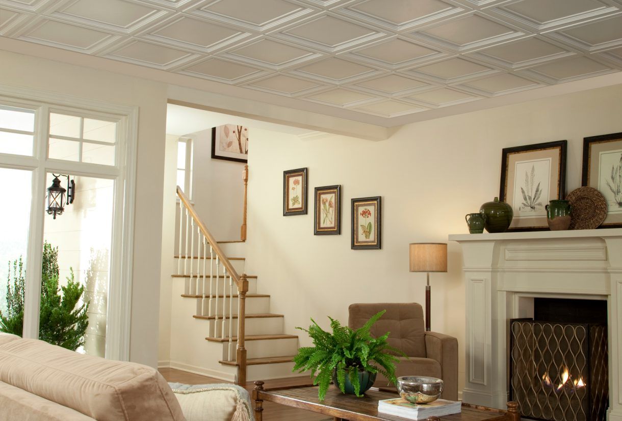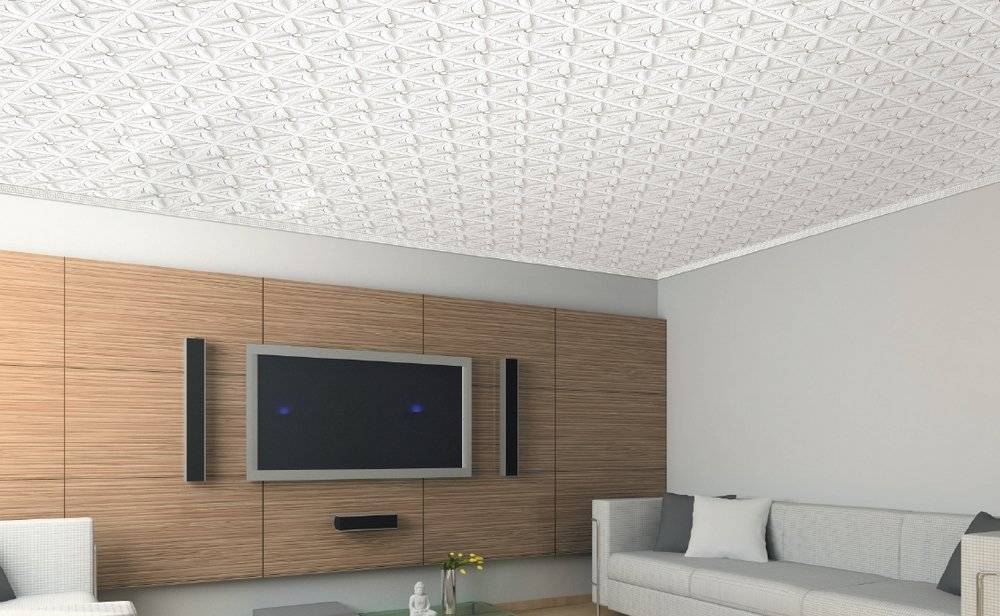 Пенопластовые плитки скрывают более существенные дефекты, но не подходят для потолков с большим перепадом высоты. С помощью подвесных конструкций можно замаскировать все недостатки потолка, спрятать коммуникации и дополнительно изолировать помещение от посторонних шумов и холода.