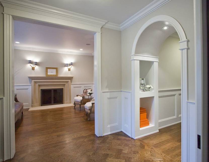 - С помощью полукруглой арки можно подчеркнуть классический интерьер. Такой способ не подходит для помещений с низкими потолками и узкими проходами.