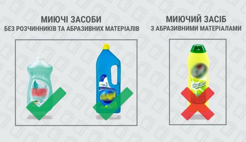 - В качестве средств для чистки брать исключительно те, что рекомендованы для пластика. Новую химию протестировать на неприметном участке.