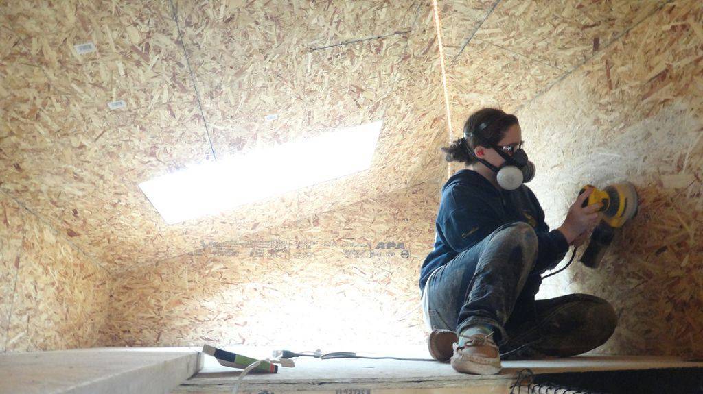 Грунтовать ОСБ плиты надо несколько раз с промежуточной шлифовкой каждого слоя до тех пор, пока не получится ровная и гладкая поверхность. Почему нужно шлифовать каждый слой? Дело в том, что грунт, заполняя поры, создает волнистость, незаметную для глаза. И хотя эти волны исчисляются сотыми долями миллиметра, на солнце за счёт света и тени поверхность OSB получает видимые глазу пятна.