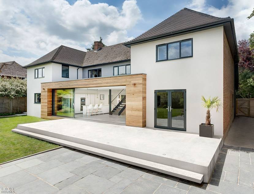 Белый дом с деревянными элементамиИсточник www.pinterest.com