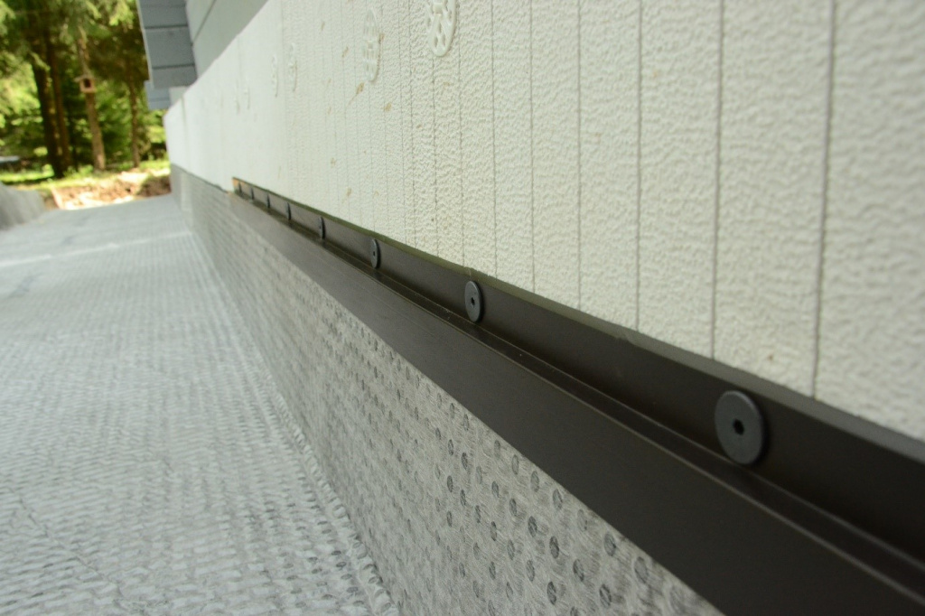 - Температурный шов у цоколя формируют из сложенных полос рубероида с суммарной толщиной около 5-8 мм.