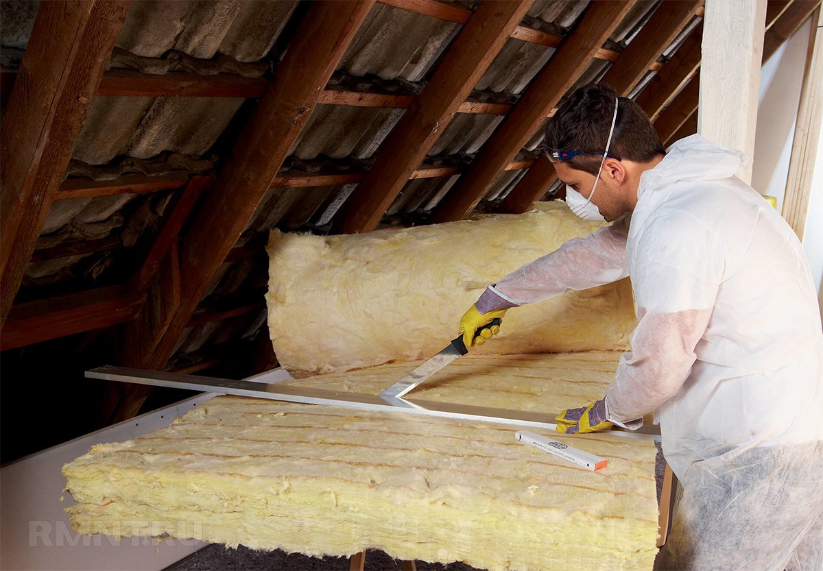 - резать утеплитель лучше в нежаркую погоду, поскольку для работы необходимо надеть защитный костюм из плотной материи, который предотвратит контакт кожи с волокнами минваты и ее раздражение;