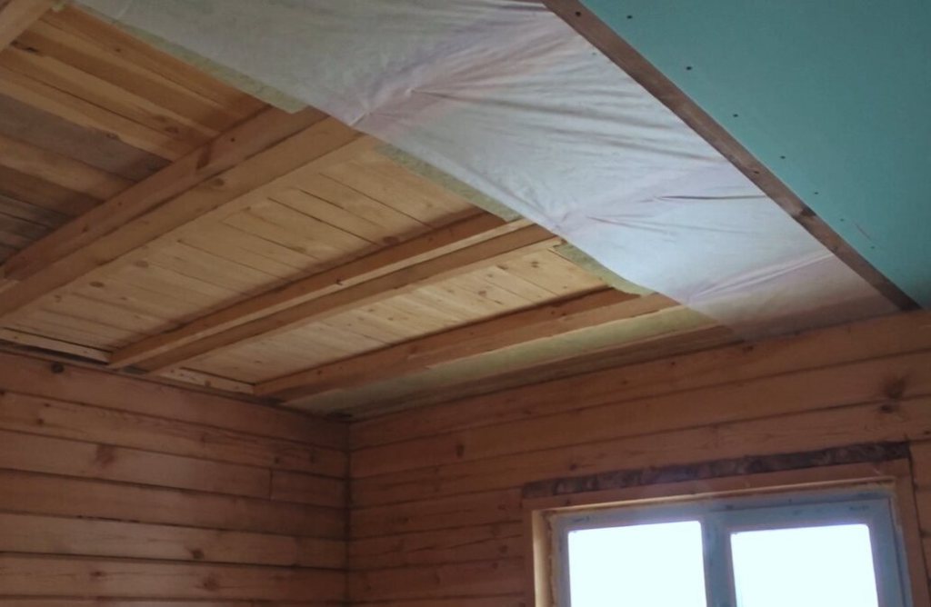 Для потолка с деревянными перекрытиями крайне важно получить защиту от вредителей, огня и влаги до момента начала работ по утеплению, так как в дальнейшем сделать это будет невозможно без проведения демонтажа утеплителя. Работы по утеплению потолка с чердака должны начаться с изоляции утеплителя от пара, поступающего из отапливаемых помещений. Пароизоляция чердачного перекрытия производиться армированными пленками из полипропилена и полиэтилена