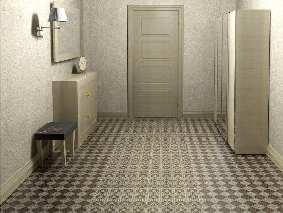 Большая прихожая может быть украшена напольным мелким рисунком. Они способны создавать атмосферу домашнего уюта. Однако. Чаще всего предпочтение отдается комбинированию с однотонностью основания для того, чтобы уравновесить яркость отдельных деталей.