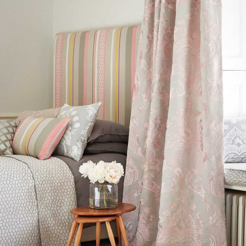 Если и розовый — то только светлых, пастельных тонов. Потолок в идеале оставить белым — так он будет казаться выше. Горизонтальная полоска тоже зрительно увеличит высоты, и вытянет стены.